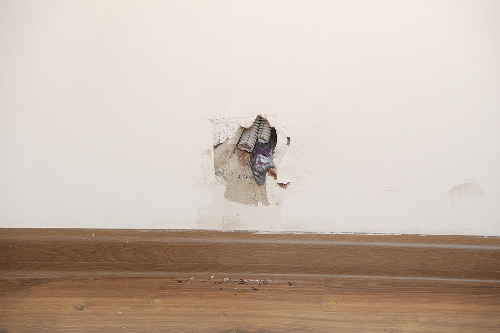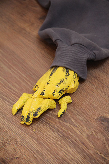 Материалы: толстовка автора; разбитый слепок руки автора; краска.