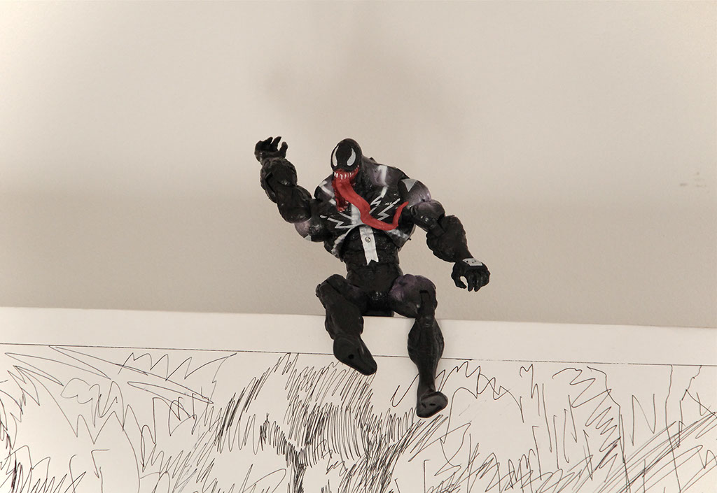 Материалы: бумага, гелевая ручка, фигурка Венома.
