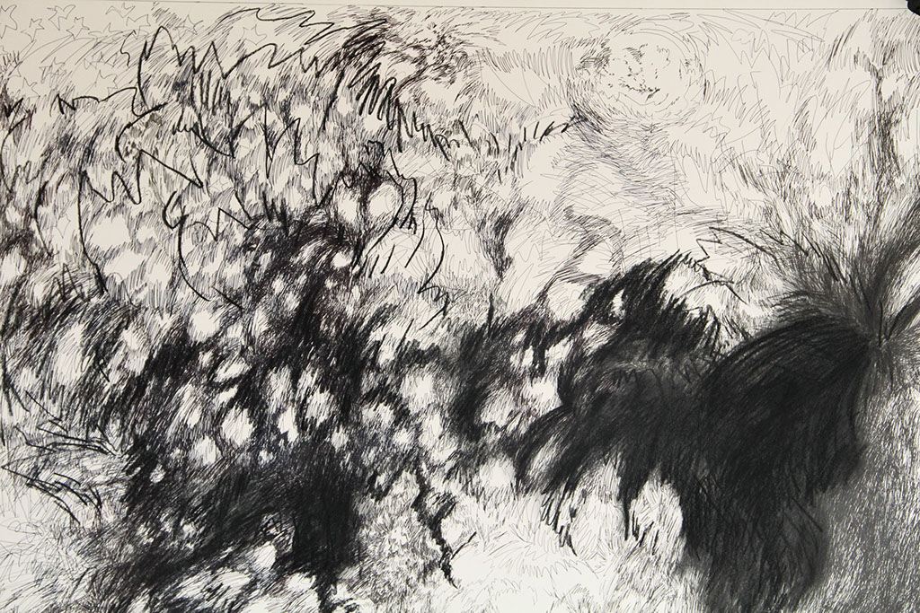 Материалы: бумага, гелевая ручка, уголь, фигурка Венома.