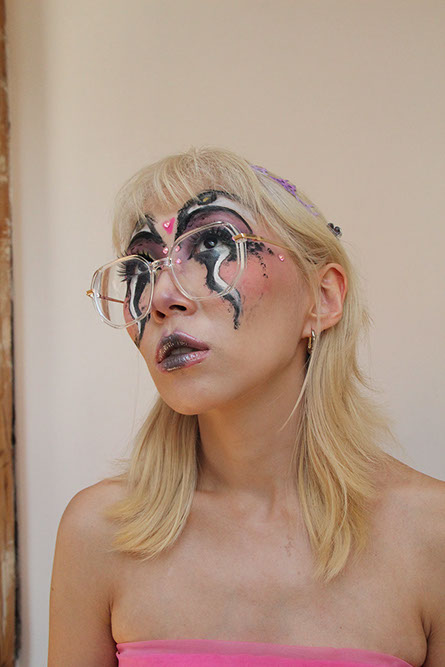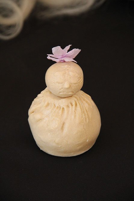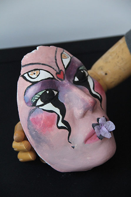 Материалы: авторский макияж на слепке лица автора, бумажный цветок.