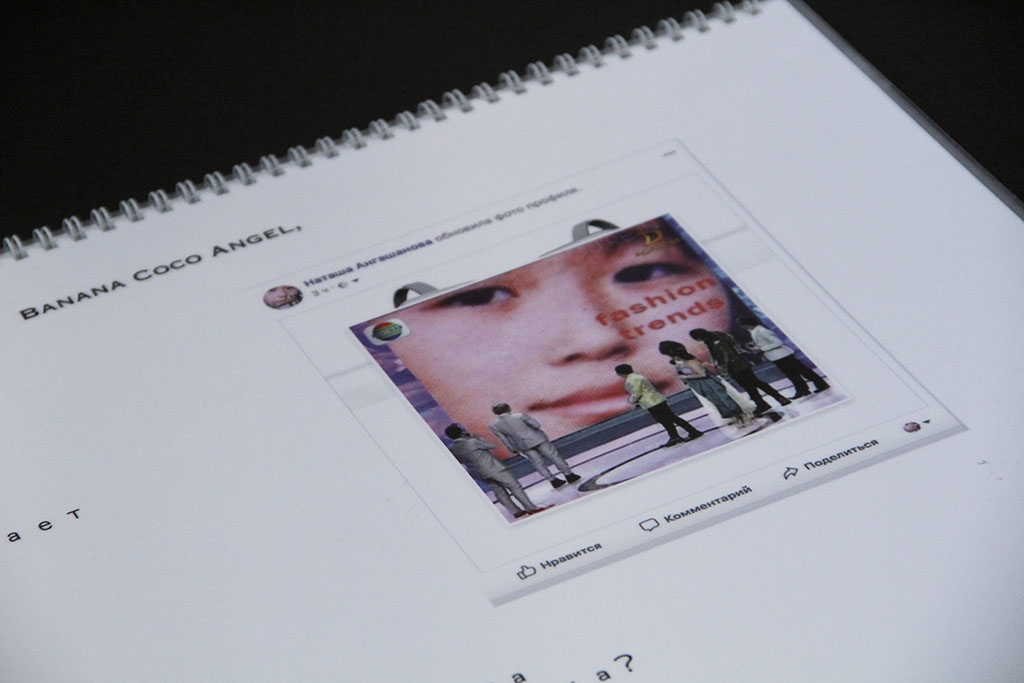 Материалы: печать, селфи, фрагменты старой видеоработы с автопортретом автора и показом сторис.