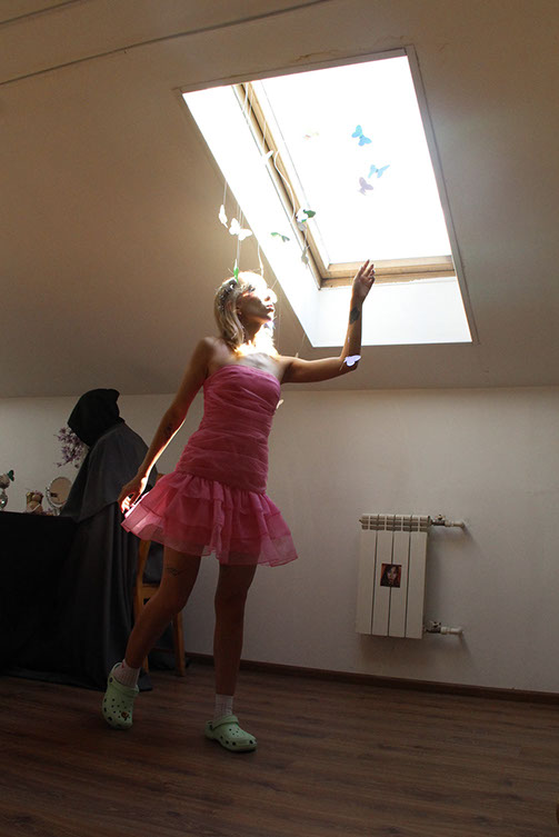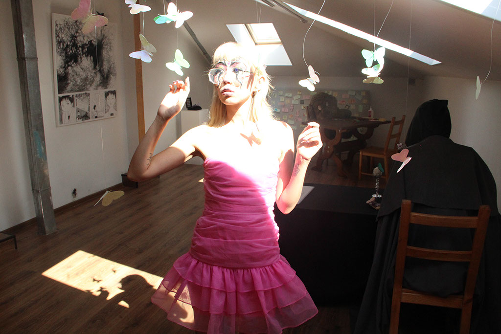 Инсталляция «Бабочки» с художницей Наташей Ангашановой в качестве модели съемки.